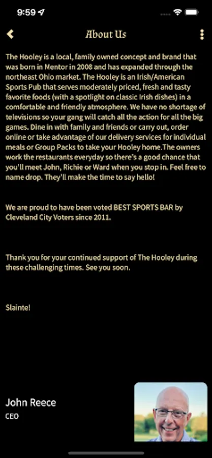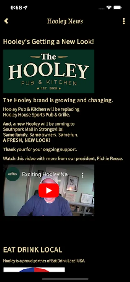 The Hooley Pub & Kitchen app offers everything Hooley at your fingertips. Order Online for carry out and delivery, make a reservation, view our complete menu contact-free, manage your Hooley Club loyalty and rewards card, join the Hooley team, contact any Hooley location or get directions with the touch of a button, interact with our social networks, send a Hooley eGift card and so much more. Also, Hooley Pub & Kitchen offers discounts and deals that are exclusive to The Hooley app users. Download The Hooley app and hold The Hooley in the palm of your hand.