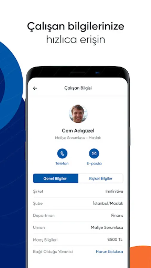 You can view the phone and e-mail information of the people working in your organization, initiate a call via the application and send an e-mail.
