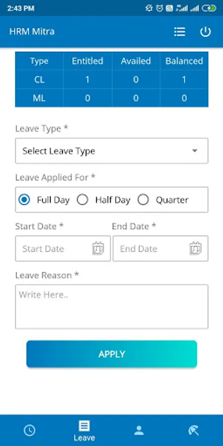 -> Check balance of casual leave, medical leave or paternity leave in account