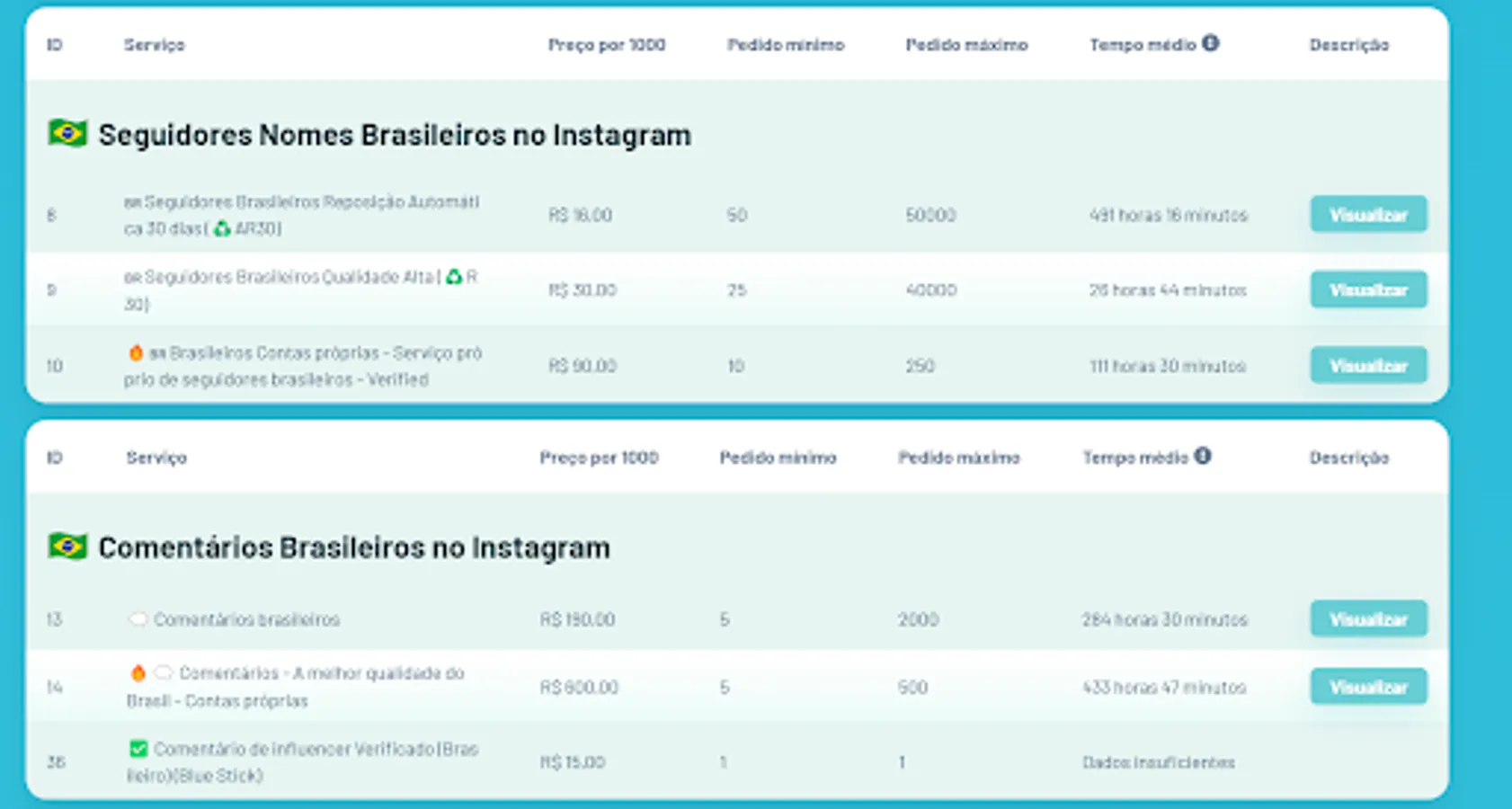 Our services are differentiated because we only work with Brazilian followers, and with replacement.