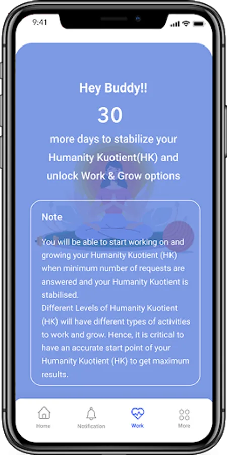 Humanity Kuotient (HK) is a confidential platform to know and grow one's human qualities. In today's fast paced world, HK is an initiative to enhance selfawareness and nurture some of the core human qualities which gives us our identity. It is said "the thing which can be measured can be managed". Taking this principle ahead, HK acts as your own yardstick to track your growth of human qualities. Please consider this application as your friend and work along with an open mind. All the activities are based on various trials/tests performed by the founders on themselves, then others and found to be effective and insightful in all the scenarios.