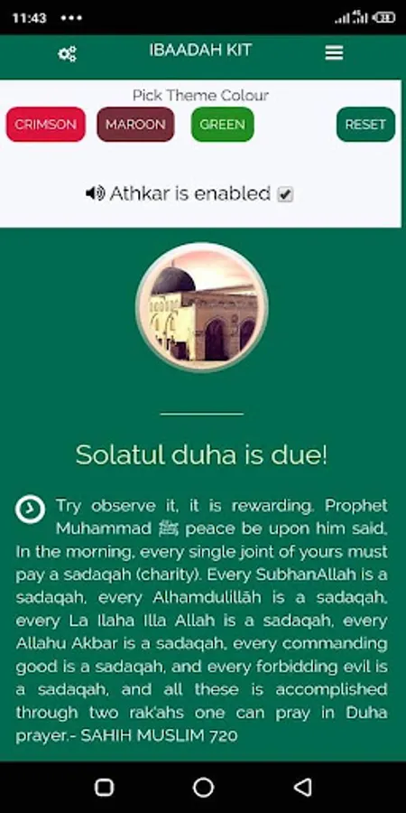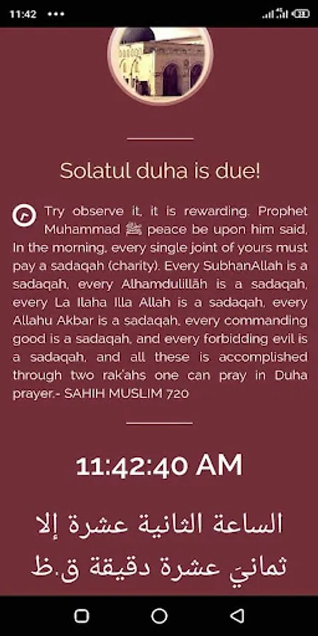 It has a feature that translates your local time into arabic text, it is replete with a functionality that chants audio athkar every thirty minutes to keep your soul connected to Allah (S.A.W ), you are therefore meant to repeat the athkars after the audio. This helps your soul not to be extremely attached to the distractions or over seriousness of using the internet and the social media. Other features include the sunnatic fasting reminder, the app is intelligent to identify some special days like Jumah, and it will remind and guide you on what you should do.