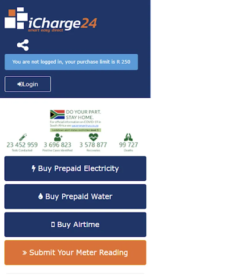 iCharge24 does vending of all PrePaid Electricity, Water and Airtime. Purchasing of prepaid electricity, water and airtime is now easier than ever and super convenient. No need to go to the shop.