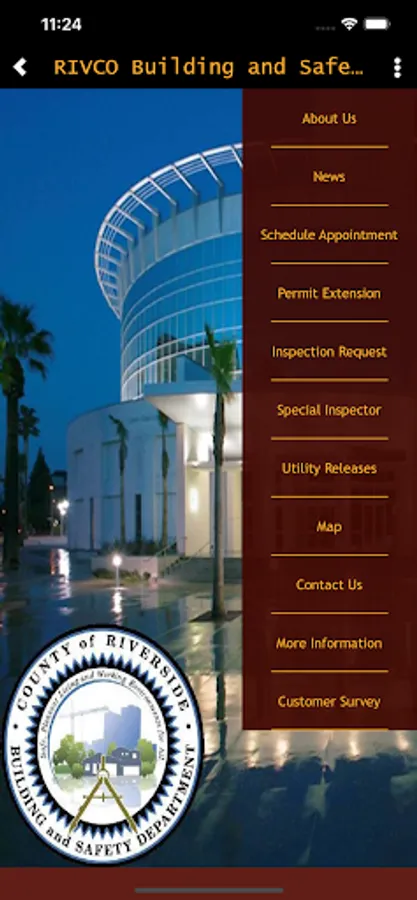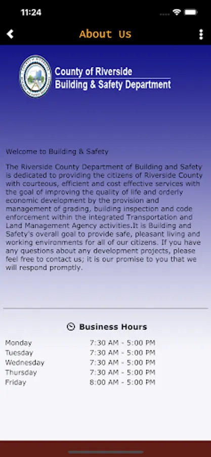 Allows users to easily access Riverside County Building and Safety through their hand held device, some features include wait times in lobbies, permit information and prices, contacts, location/hours and inspection request