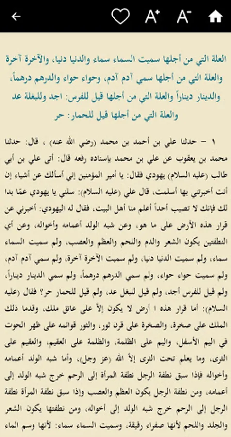 The information in this application was obtained from the book (The Illuminations of Sharia - Allama Sheikh Al-Saduq)