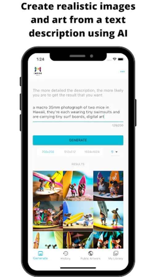 Unleash your creativity with our AI image generator app. Easily create stunning, unique images with the help of our advanced AI technology. Whether you're a professional designer or a hobbyist, our app has something for everyone.