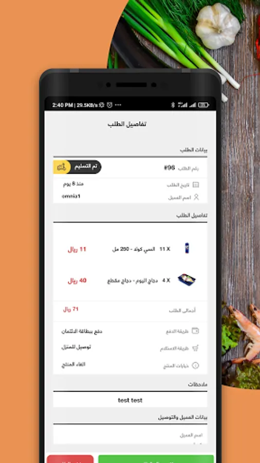 يمكنك تغيير حالة الطلب الي ( جاري العمل , في انتظار التوصيل , تم التوصيل , إلغاء ) بضغطة واحدة