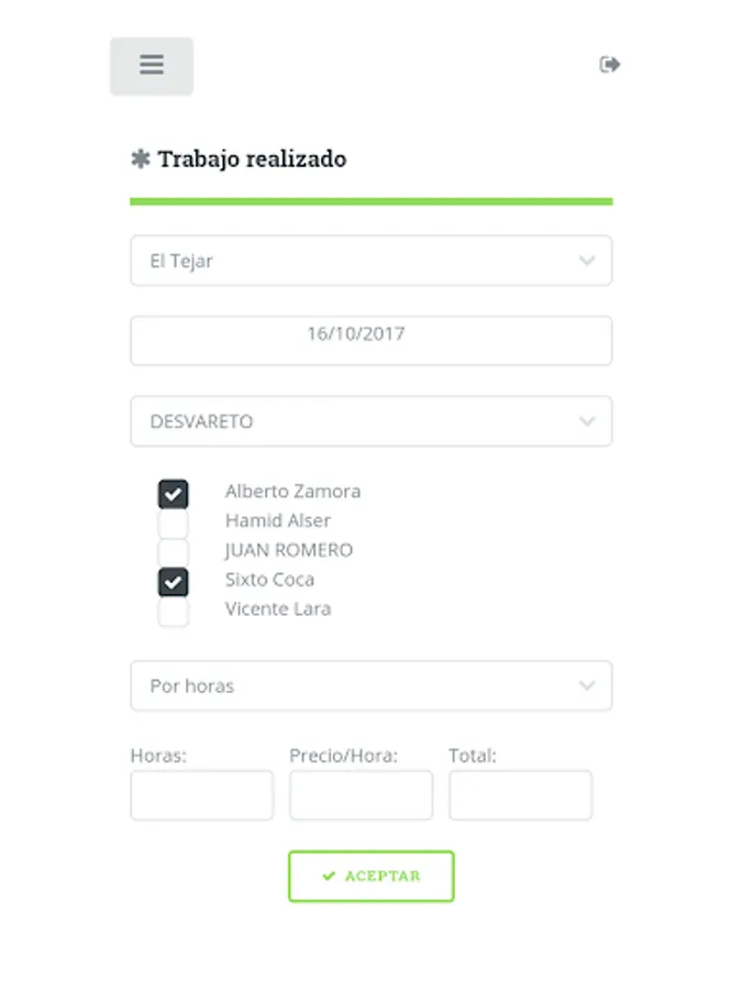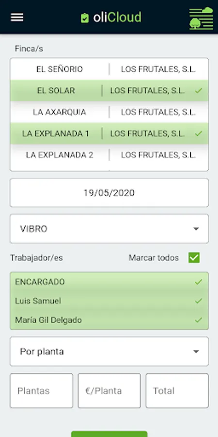 Forget the notebook and the old delivery notes! Enter from the same farm the work done and the workers who have carried out this task, inform your advice of the employees' registration, calculate with very few steps the collections to your clients and the payments to your workers, control all the Expenses from your suppliers ...