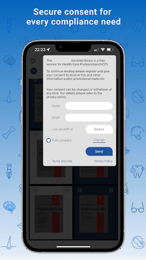 The inforMedGO app allows sales teams to show marketing materials during face to face meetings. From within the app access to the materials can be e-mailed by the sales person to the viewer.