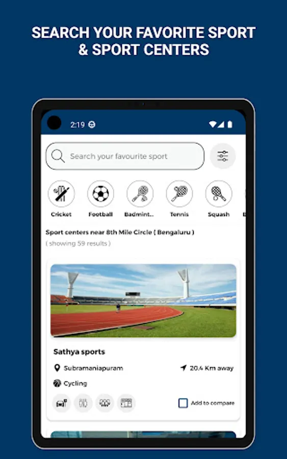 Martial Arts in Koramangala,Football in Whitefield,Badminton in Bellandur,Badminton in Marathahalli,Badminton in Yelahanka,Badminton in Electronic City,Badminton in Horamavu,Badminton in HSR Layout,Badminton in Indiranagar,Swimming in Whitefield,Badminton in Mahadevapura,Cricket in Whitefield,Badminton in Whitefield,Karate in Horamavu,Gymnastic in Koramangala,Swimming in Marathahalli,Martial Arts in Jp Nagar,Badminton in Sahakara Nagar,Karate in Ramamurthy Nagar,Badminton in Rajarajeshwari Nagar,Karate in Rajarajeshwari Nagar,Karate in Banashankari 3rd Stage,Badminton in Koramangala,Cricket in Rajarajeshwari Nagar,Swimming in Electronic City