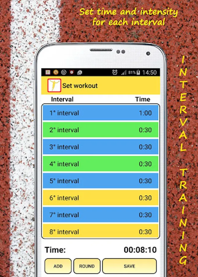 2 - Interval training (intervals with time): you can set the intervals indicating for each one of them, the time and the intensity.
