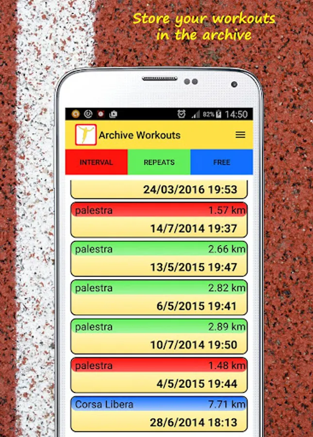 1 - Repetitions (intervals with distance): you can set the intervals indicating for each one of them, the distance and the intensity.