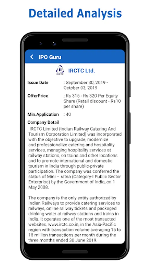 This is the complete IPO guide application as it provides detail information on each FAQ. Like what is IPO ? How to apply ? What is the process ? etc. included in the app.