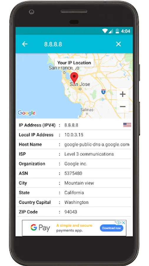 Locate your IP Address and its full details with ease, simply by opening the app. In this app you can see what is my ip address location with map or tracer any other ip address.