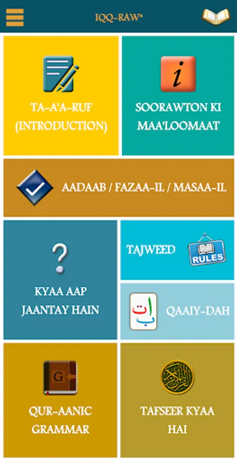 Iqq-raaw is a uniquely comprehensive and highly informative illustrated android application in English transliteration from Urdu that concisely compiles the basic framework for studying the Qur-aan. The systematically arranged topics in this app clarify the importance of correct Qur-aanic recitation and highlight the central themes explored in the Qur-aan. The app serves as a one-stop destination for a simplified comprehensive manual to Qur-aan recitation etiquettes, introduction to lessons for basic recitation, Tajweed, Grammar, Tafseer, Scientific concepts explored, stories of Prophets, and an exhaustive backdrop to the history, structure and the messages elucidated in the chapters of the Qur-aan.