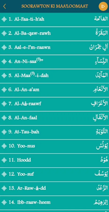 Introduction to types of Soorawhs, places of revelation, various names of a Soorawh, list of main topics covered in Soorawh highlighting its stories, messages and commands, connection with a previously revealed Soorawh, and associated hadith Allow this app to reinforce your relationship with Allawh through learning Qur-aanic recitation, understanding its themes (or messages) and abiding by its prescribed way of life. Let the Qur-aan honor you with its secrets and raise your status in this world and the Hereafter.