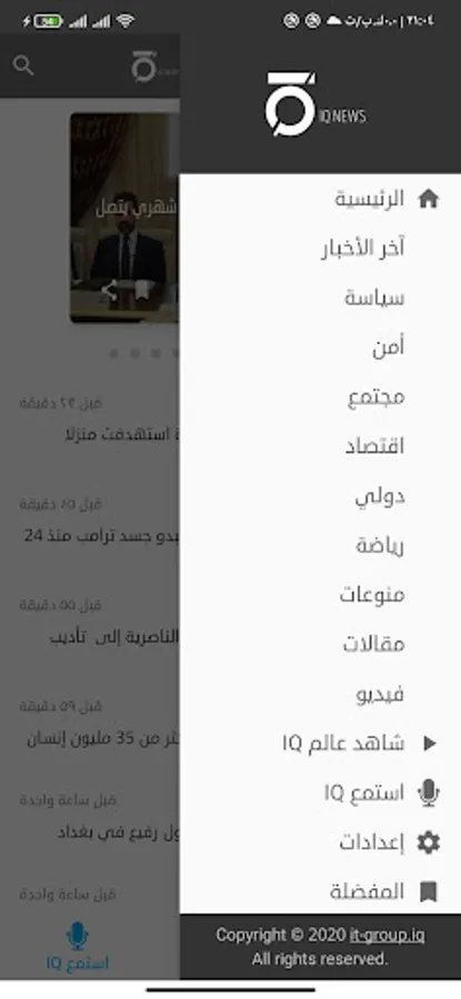 IQ News is an independent news site, with competitive standards, run by Iraqi journalists residing inside and outside Iraq.
