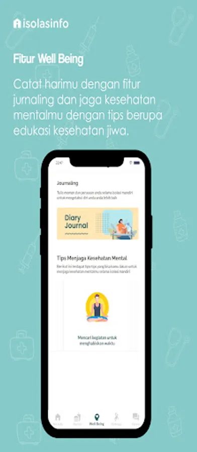 Well being as a container and moments of feeling during independent isolation Write and reflect on yourself through journaling in the Well being isolation info feature. You can also take care of your mental health through information in the form of tips available during the COVID-19 pandemic