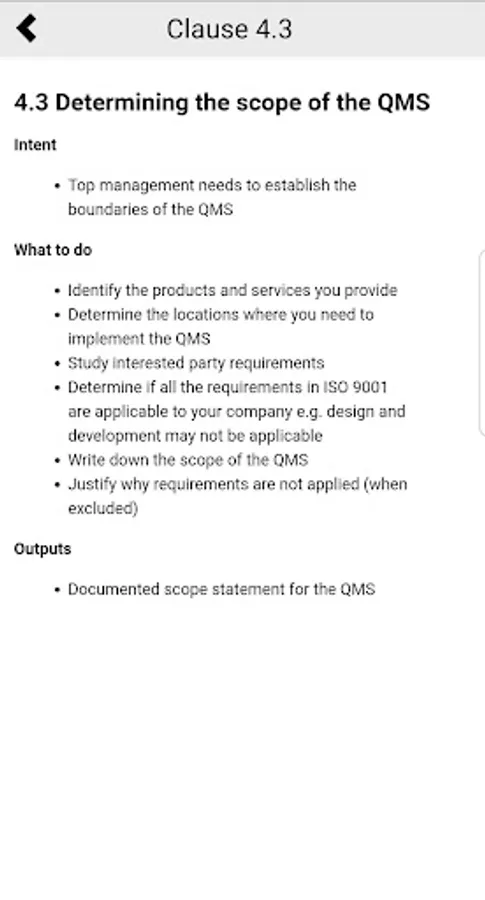 It explains the requirements of the different clauses and will help people to understand what must be done to comply with the requirements of the different clauses in the standard.