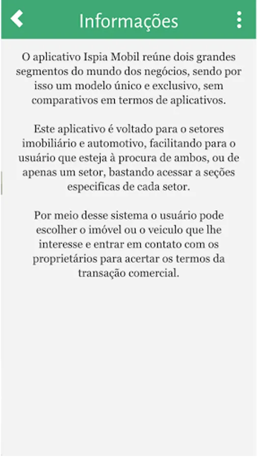 This application is aimed at the real estate and automotive sectors, making it easy for the user who is looking for both, or just one sector, simply accessing specific sections of each sector.