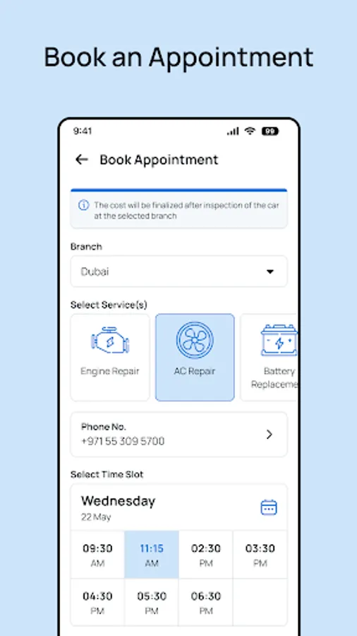 The most basic feature that this app provides is the ability to book your car service appointment according to your schedule.