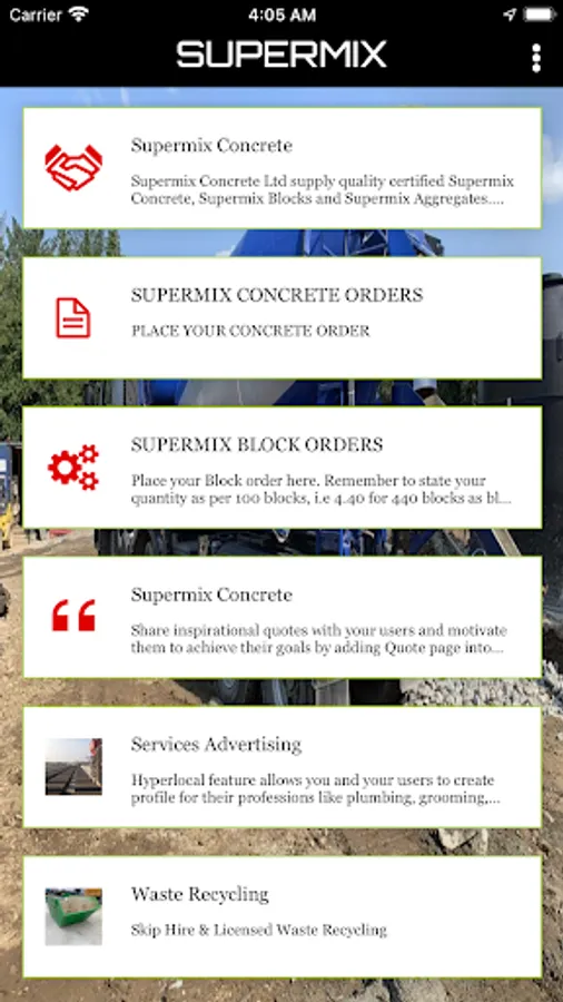 Supermix App is for Supermix customers to have real time communication, placing orders, requesting quotations, tracking deliveries. Keep up to date with the latest products and services available from Supermix.
