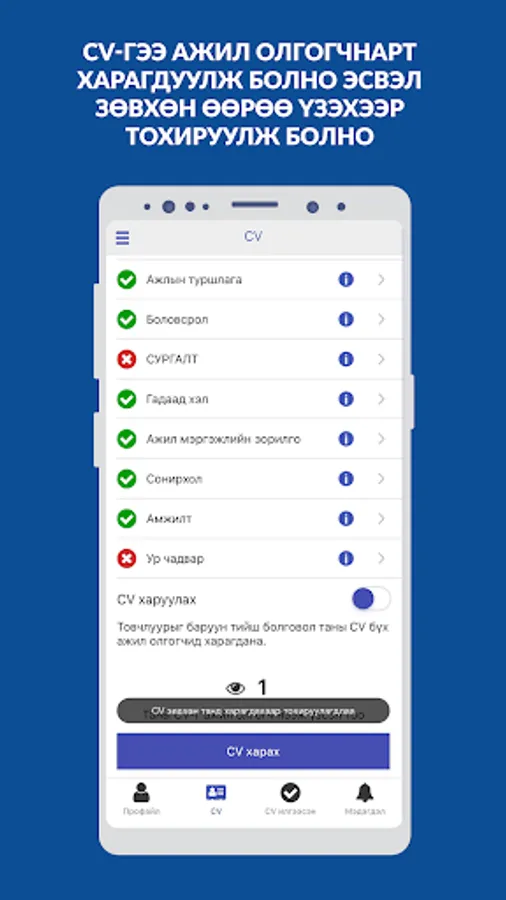 Jobsite.mn цахим хуудасны ажил хайгчид зориулсан аппликейшинг үнэгүй суулгаад хүссэн ажлын зараа гар утсан дээрээ хүлээн аваарай!