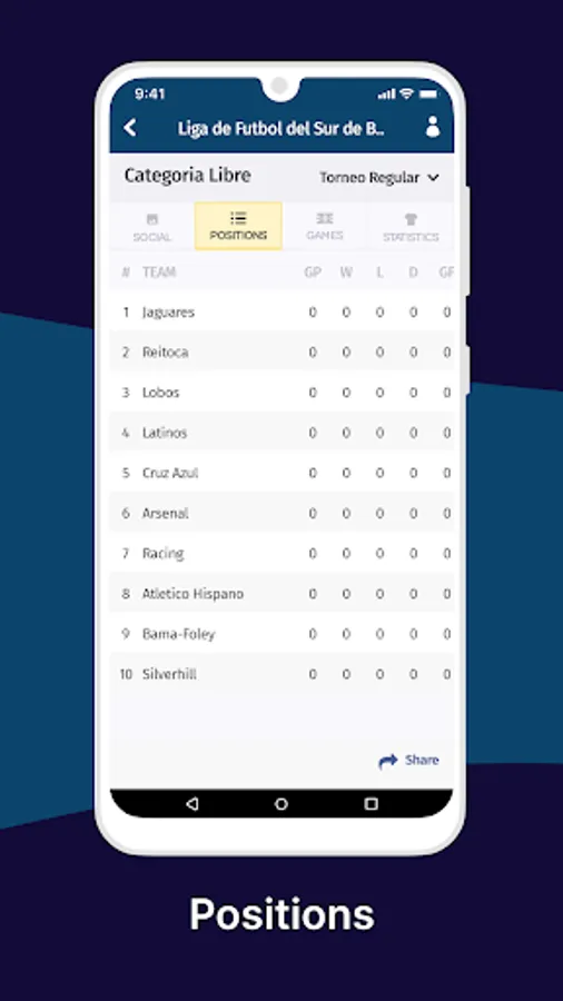 Join the community of amateur soccer leagues. We are the centralized app for getting statistics for all the soccer leagues you play on. Here you will find your league’s positions table, schedules, top scorers, red cards, yellow cards, etc. You will also be able to showcase your skills or plays through images or videos.