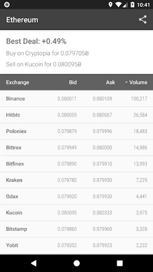 Crypto Arbitrage compare your favorite cryptocurrencies prices on several exchanges to help you find the best deal.