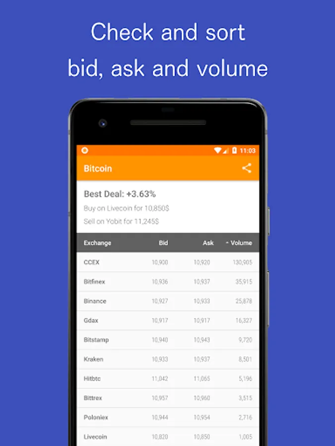 Crypto Arbitrage Pro helps you compare your favorite cryptocurrencies prices on several exchanges to help you find the best deal.
