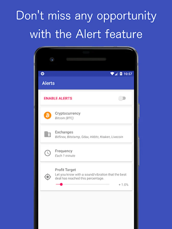 - Alarm feature : Always be aware of good arbitrage opportunities