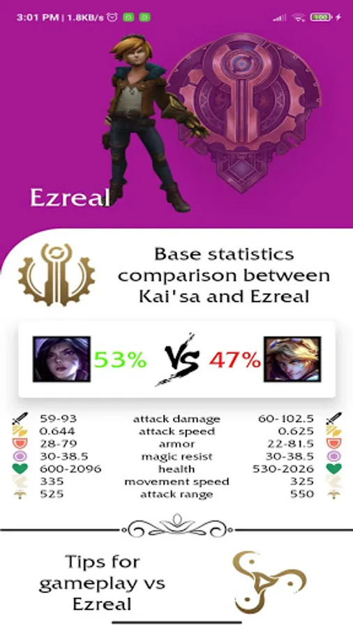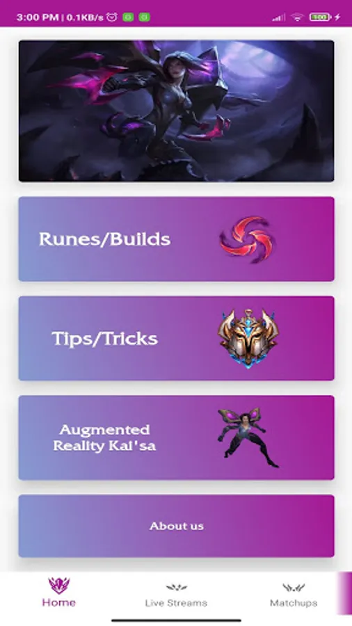 You can find Kaisa matchups, livestreams, runes, builds, tips and tricks or even an augmented reality Kaisa 3d model viewer. The app contains tips for every matchups, winrates, adc stat comparison between every adc and Kaisa and much more. I would be happy if you added me on league of legends, my name is Toplane Coven and I play on EUNE but you can add be from everywhere if you add #EUNE after my name. See you on the rift!