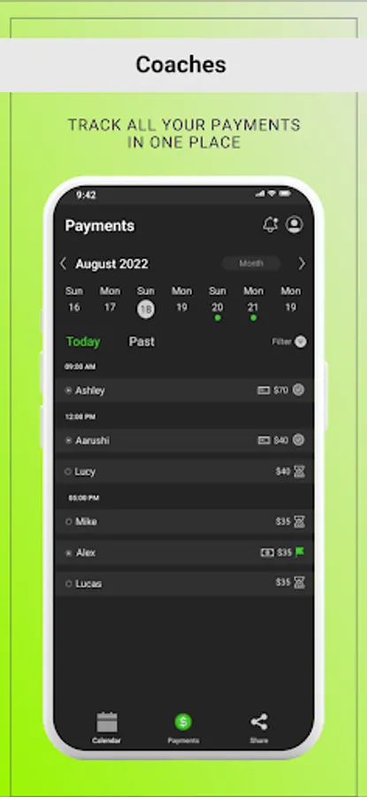 - Easily manage payment issues with coaches