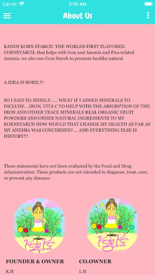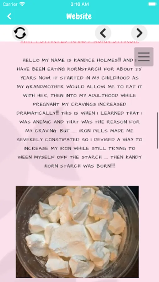 This app is for user who suffers with Pica an often debilitating condition that causes its host to consume large amounts of corn starch. Kandy Korn Starch has developed a product that helps reduce cravings and help to alleviate the impulse to consume starch products.