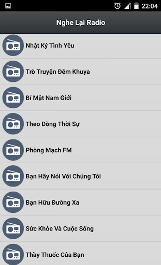 App helps people to listen to the programs broadcast on the Voice of Vietnam, such as: music 12h, read the story of the night, radio blog, music gift, ...