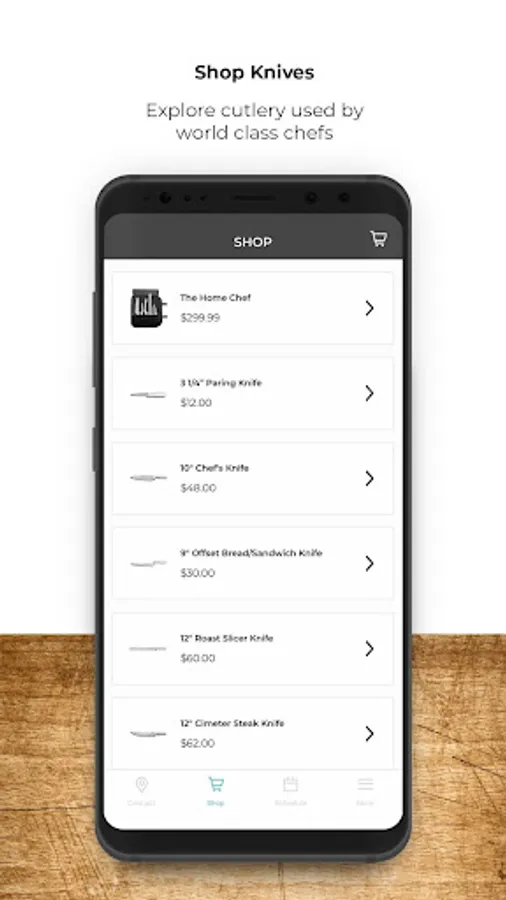 Make the best of your cooking abilities, find your local provider of knives, you can purchase these physical knives through the app and also purchase services like sharpening and others.