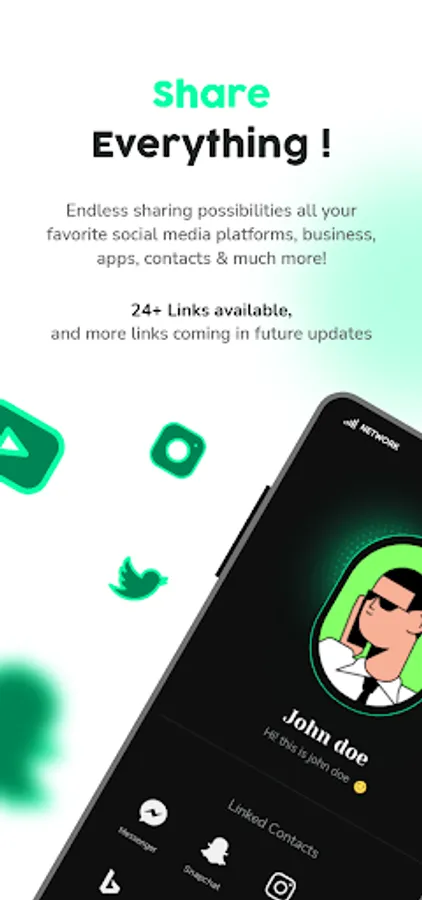 With a quick scan or a tap you can share your contact. Update your information on the go with the robust mobile application. Generate a QR code by storing the information of your choice - you can store all your social media profiles - Instagram, Facebook, Linkedin, web pages, websites, blogs, tech domains and what not. Customise your mobile app to share the profile/contact of your choice.