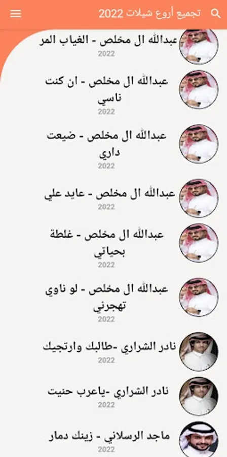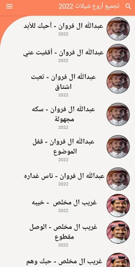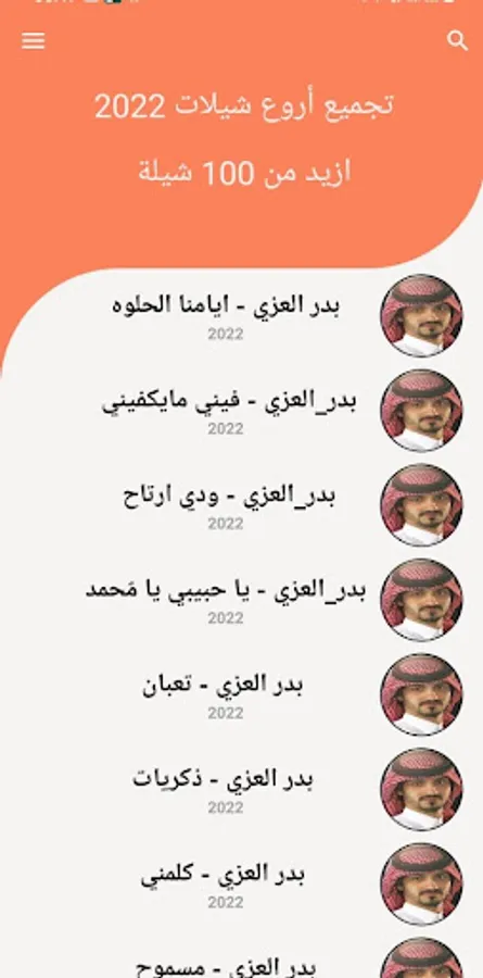 Welcome to the application of compiling the finest chelated 2022, where the application enables you to enjoy the most wonderful chelated chelated prominent artists such as Bandar bin Aweer and Gharib Al Mukhlis Abdullah Al Farwan, Majed Al Raslani, all of this without the Internet