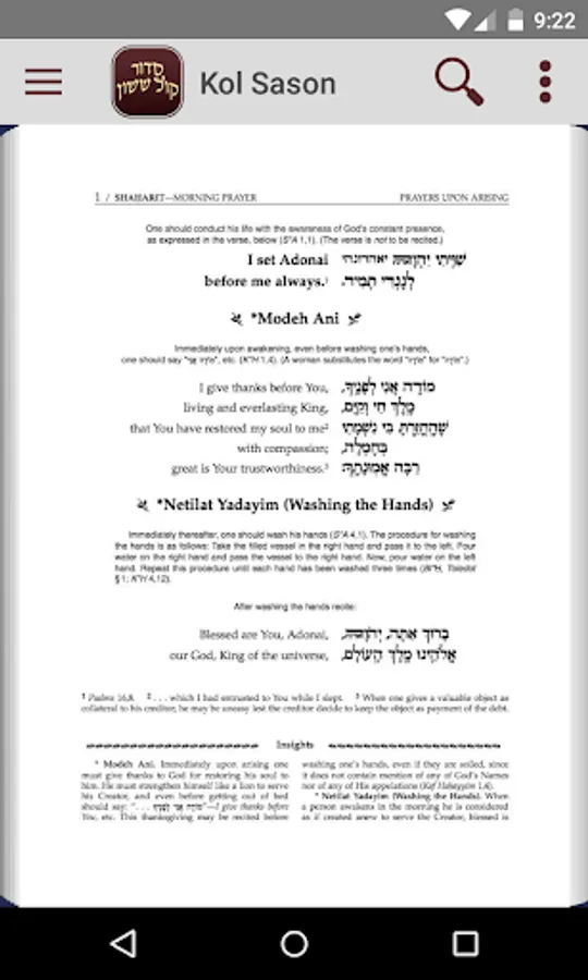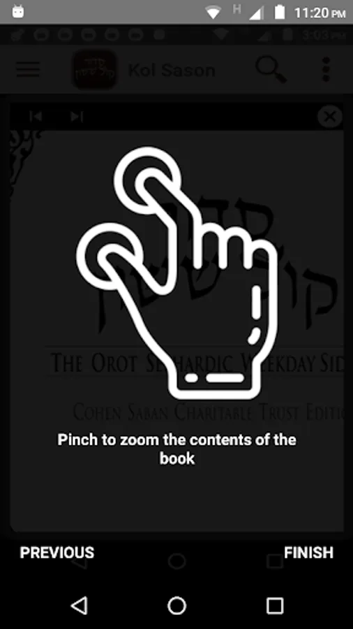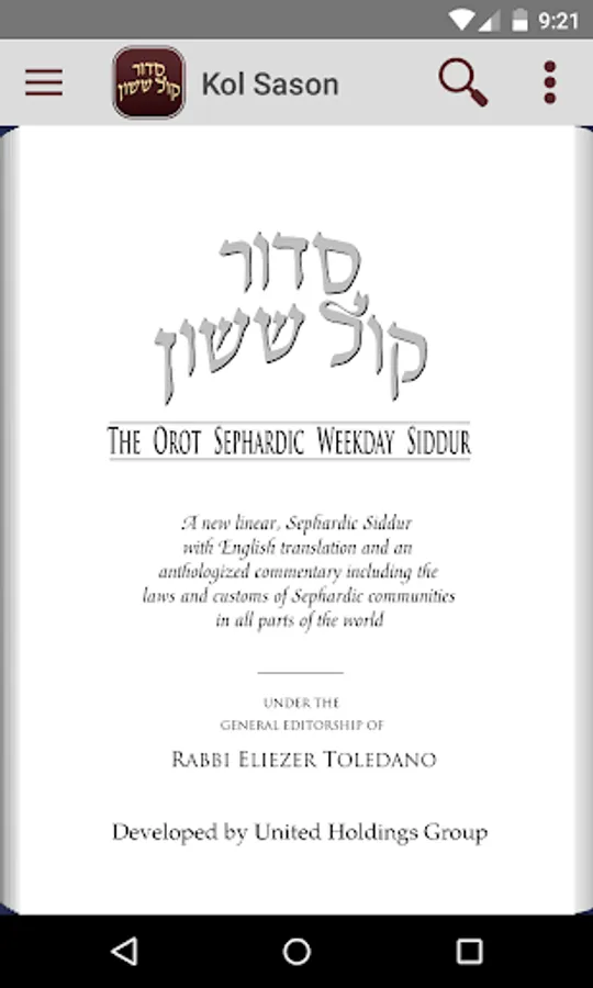 The Kol Sason App features a full Table of Contents and is complete with all prayers for the entire year including prayers for Weekdays, Holidays, Marriage Ceremony as well as many other Special Occasions and Various Blessings.