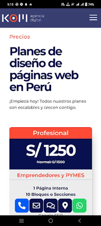 Peruvian Digital Agency specialized in creating pages optimized with SEO (Search Engine Optimization). In this app you will find our prices, clients and services that we provide, in addition to our powerful Online Quoter, which after selecting a few simple options, will send you a detailed quote to your Whatsapp for our Web Design and positioning services, personalized and instantly. Prices are in Peruvian Soles.