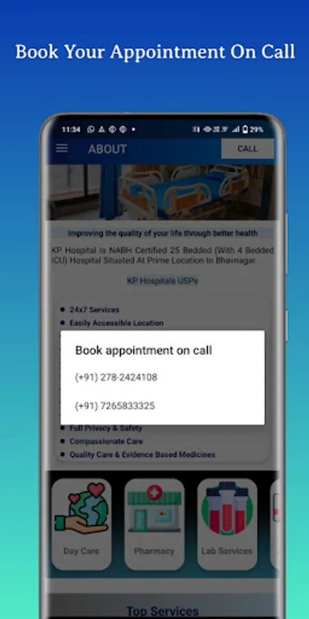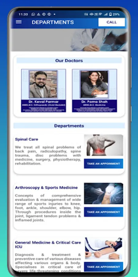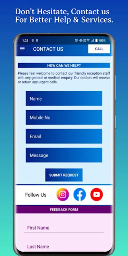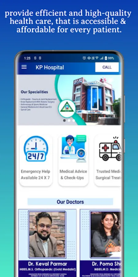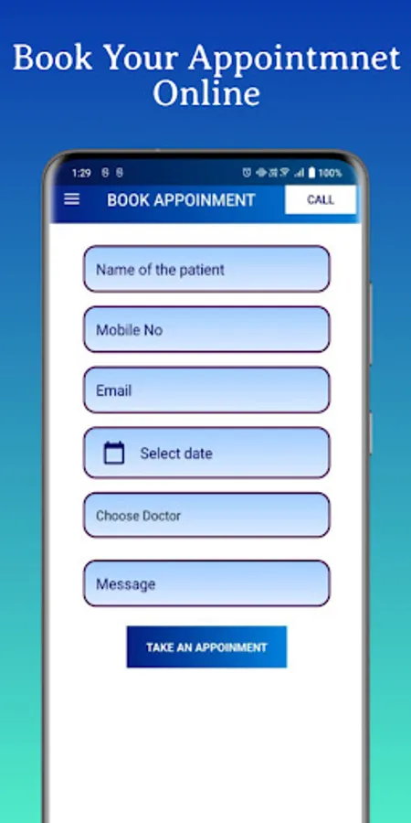 Through this app Patient can easily book their appointment using fill form in application or call .This is easy and short way because no need go to hospital for appointment by using app we can book it online and reach to clinic at booked time.