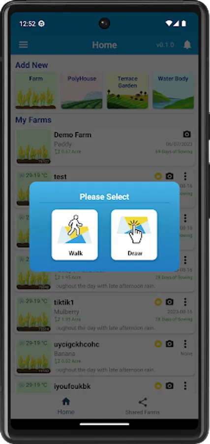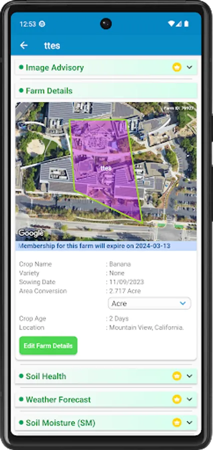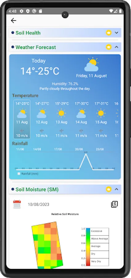 Latitude Sat2Farm mobile application, a satellite-based agricultural smartphone application, is mainly developed to help the users for understanding the farm health, providing irrigation advisory as well as dealing with the weather forecast. It is a simple application whereas the user plots his/her farm boundary and the requirements about the farm are provided through the same.