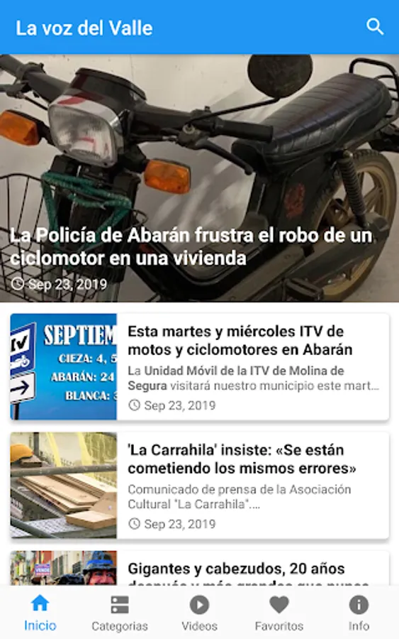 Check the breaking news in the Android app ' The voice of the valley ', that way, you can stay informed about the most relevant events that happen in this Region of Murcia specifically in the vega alta del segura specifically in the municipalities of Abarán , Blanca and Cieza in a way Practical and simple, in just a couple of minutes.