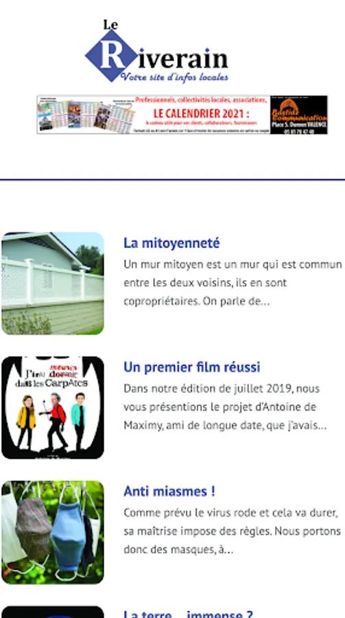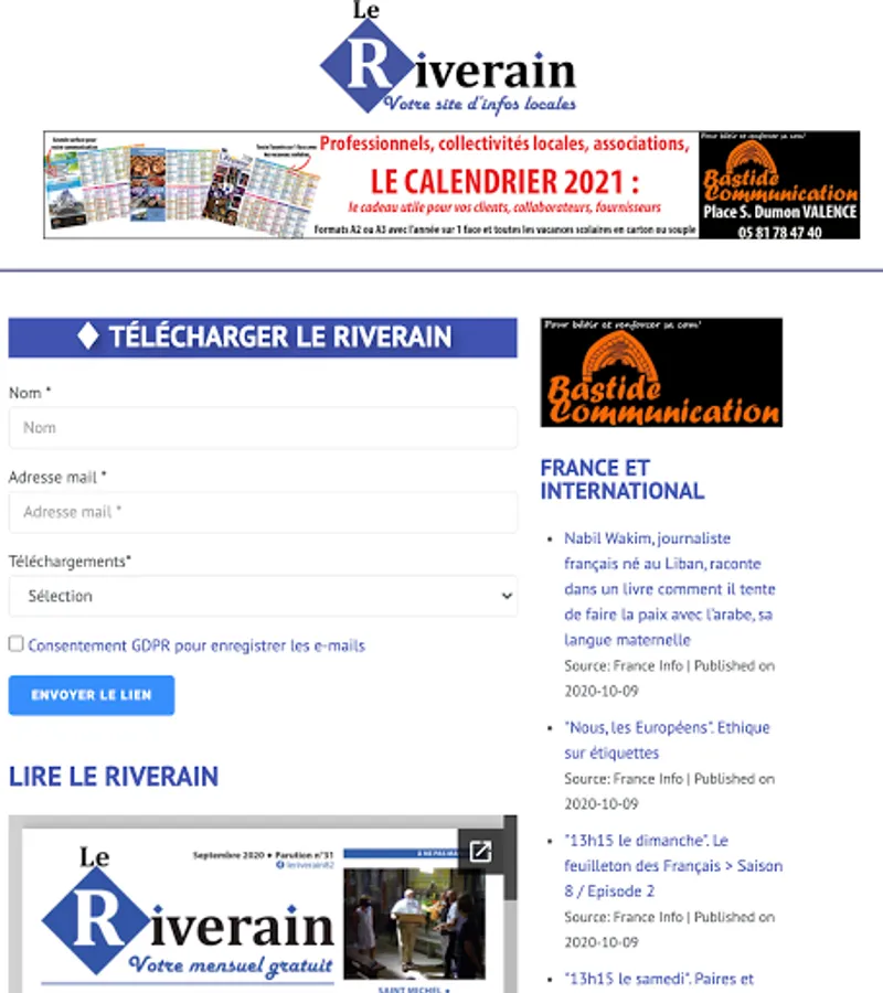 Le Riverain: a free monthly newspaper with 8000 copies printed and distributed throughout the Deux Rives Community of Communes. Now available on the web and in mobile application