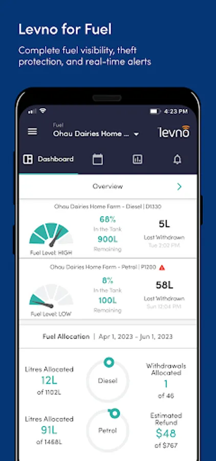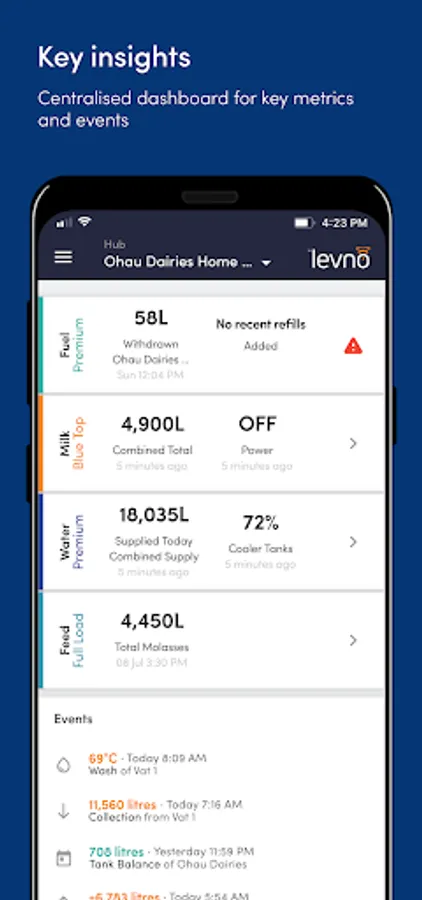 Get the insights you need about your farm or commercial operation all in one place with the Levno App.