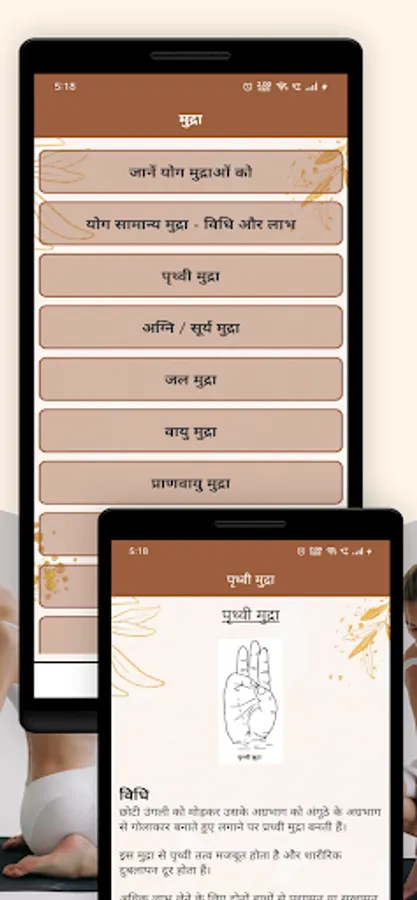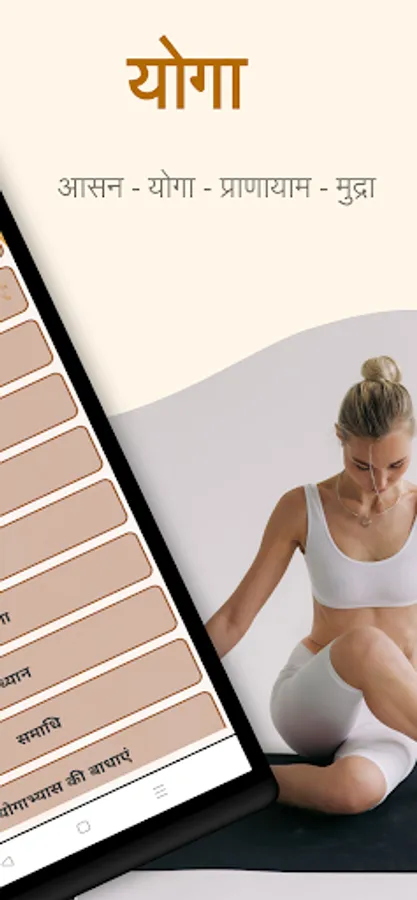 - Detailed descriptions and benefits of each yoga pose, pranayama, and mudra. (प्रत्येक योग आसन, प्राणायाम और मुद्रा का विवरण और लाभ।)