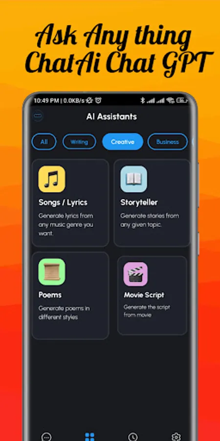 With ChatAi - Chat Assistant powered by Chat Assistant, you can unleash your creativity. Write a poem, rap lyrics, or a story.