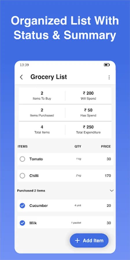 Our app will help you to prepare your desired list quickly. You can add items in the list with their specific details like name, quantity, unit and price. Adding prices of items to a list will help you to analyse your expenditure regarding shopping.