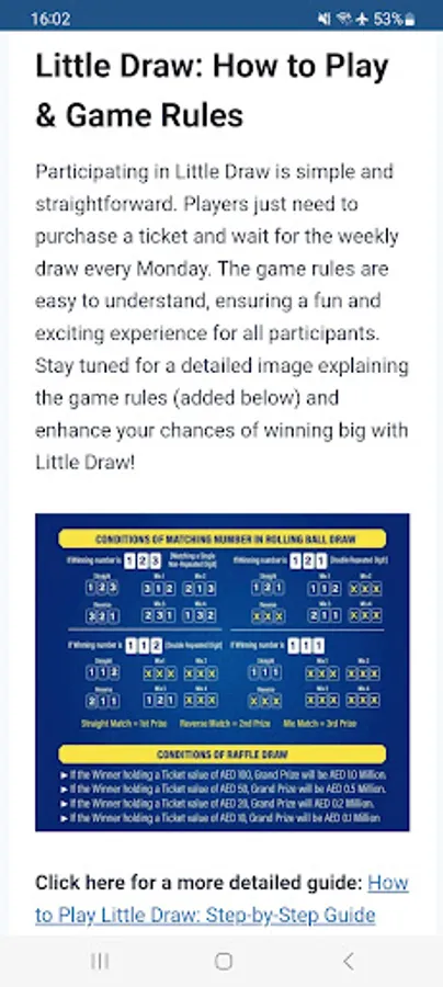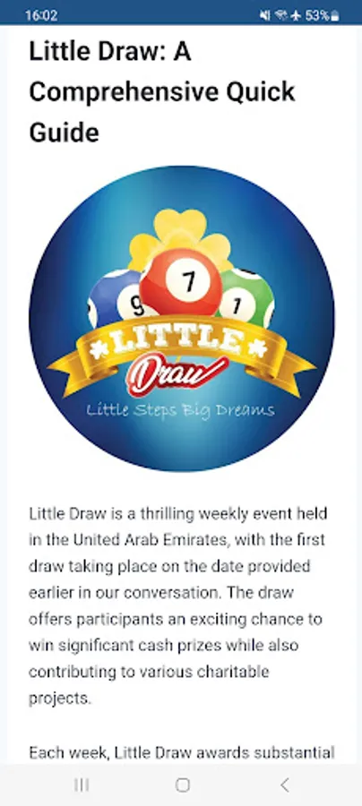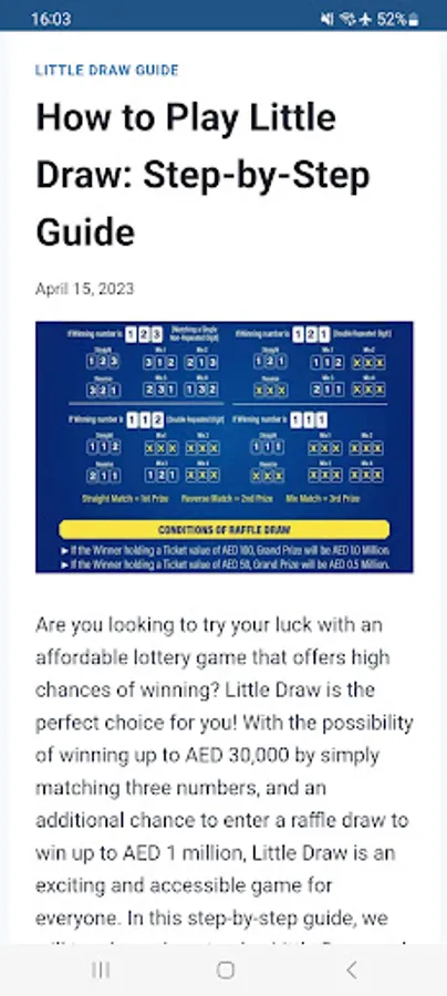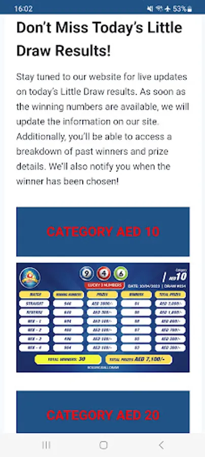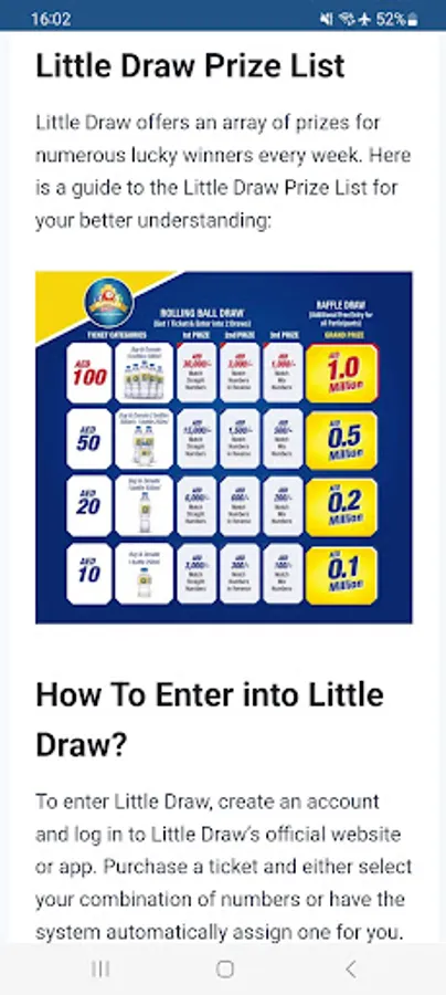 Get the latest Little Draw Results UAE within seconds of the draws taking place with this user-friendly app that shows the Little Draw winning numbers, prize breakdown information, previous results, and tips and tricks on winning for the following Little Draw results: