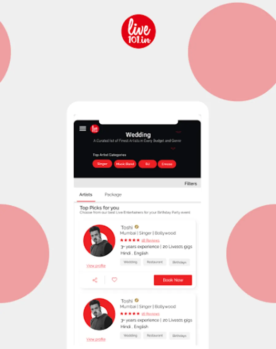 You know what’s better than entertainment? Live Entertainment! In order to live, you need to experience it live. With our services, tune out from your screens and plug into live performances that allow you to create memorable moments in life.. An amalgamation of excellence and calibre, we strive to give you an unparalleled experience and deliver the best to cover all your live entertainment requirements. Live101 helps you cut down the daunting process of hiring a live artist with utter ease. All you have to do is let us know what you are looking for and we will provide you with an experienced artist matching all your filters. To address all your worries, we have an efficient team that works relentlessly for you to enjoy your special occasion to the fullest. From hiring the best performer to lighten up your occasion to making sure your event is grand celebration, Live101 caters to all your needs of Live for Entertainment.